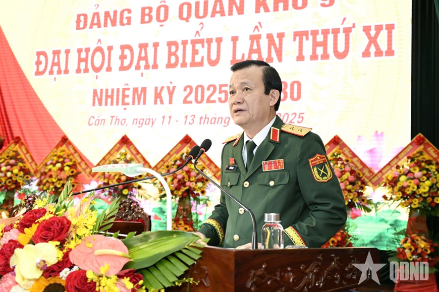 Thượng tướng Võ Minh Lương, Thứ trưởng Bộ Quốc phòng phát biểu chỉ đạo Đại hội đại biểu Đảng bộ Quân khu 9.