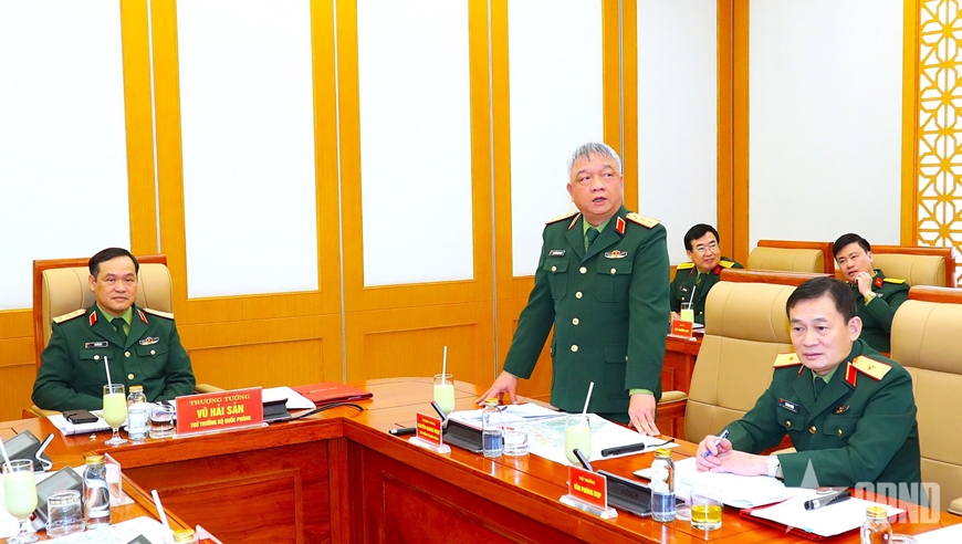 Thượng tướng Vũ Hải Sản chủ trì buổi làm việc.