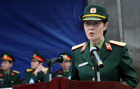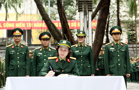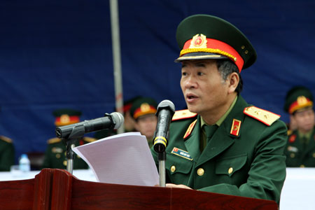 Thiếu tướng Lê Thu Hà phát động đợt thi đua cao điểm chào mừng 60 năm Chiến thắng Điện Biên Phủ.