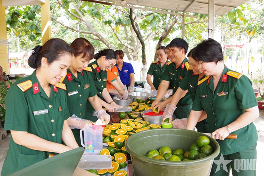 Trong không khí sôi nổi mùa huấn luyện, chương trình “Tiếp sức mùa huấn luyện” nhằm động viên tinh thần bộ đội học tập trong điều kiện thời tiết nắng nóng. Trong giờ giải lao, những ly nước cam mát, trái cây ướp lạnh được các hội viên phụ nữ và đoàn viên thanh niên trao đến tận tay từng chiến sĩ, góp phần xua tan mệt mỏi, tiếp thêm năng lượng.