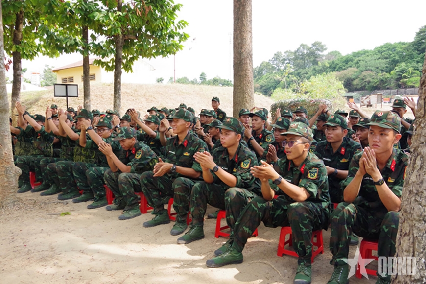 | Các chiến sĩ hào hứng tham gia hoạt động văn nghệ. |