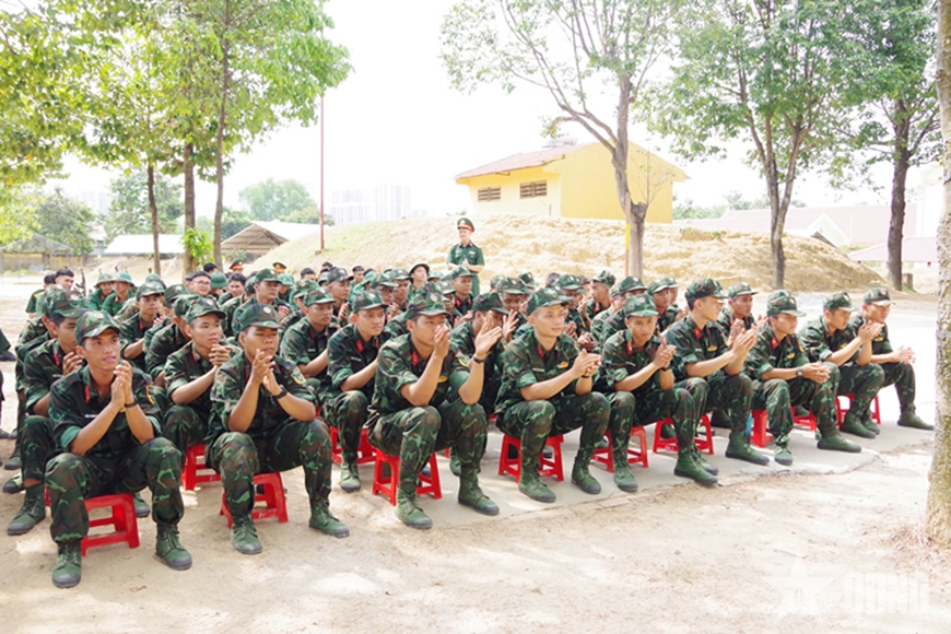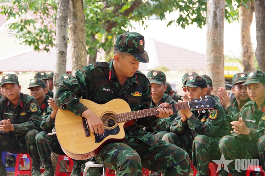 | Chiến sĩ mới vui tham gia văn nghệ tập thể. |
