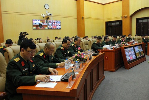 Các đại biểu dự hội nghị tại điểm cầu Bộ Quốc phòng. Ảnh: ĐỨC ANH |