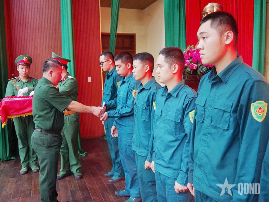 | Trao thẻ tiết kiệm cho chiến sĩ dân quân. |