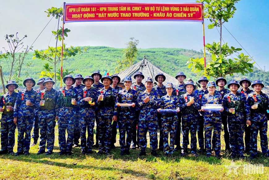 Nhân dịp này, Hội Phụ nữ Lữ đoàn 161 phối hợp với Hội Phụ nữ Trung tâm huấn luyện chuyên môn kỹ thuật - nghiệp vụ Vùng 3 Hải quân đã tổ chức chương trình “Bát nước thao trường”. Trong giờ giải lao trên thao trường, các hội viên phụ nữ đã chuẩn bị những phần trái cây tươi và ly nước mát trao tận tay cán bộ, chiến sĩ Tiểu đoàn 355, giúp mọi người giảm bớt mệt mỏi sau buổi huấn luyện vất vả dưới cái nắng đầu hè oi bức.
