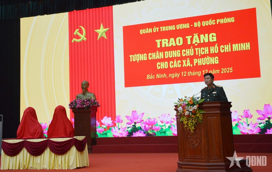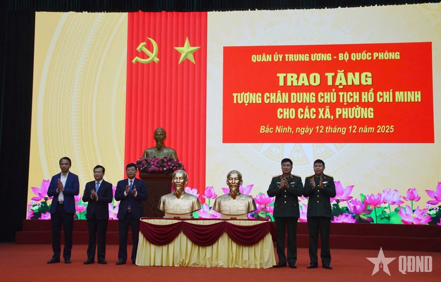 Lãnh đạo Quân khu 1 và tỉnh Bắc Ninh trao tượng Chủ tịch Hồ Chí Minh tặng 99 xã, phường của tỉnh Bắc Ninh.