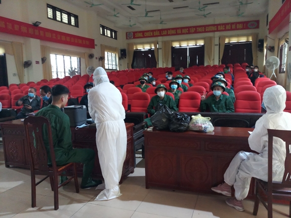 | Thanh niên trúng tuyển nghĩa vụ quân sự xã Ngọc Liên, huyện Cẩm Giàng thực hiện khai báo y tế và xét nghiệm Covid-19 |