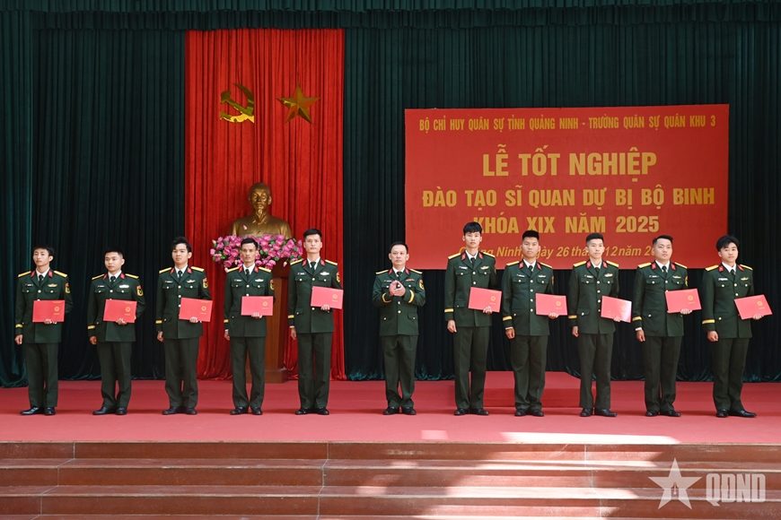 Đồng chí Chính ủy Bộ CHQS tỉnh Quảng Ninh tin tưởng và mong rằng, mỗi đồng chí sĩ quan dự bị tốt nghiệp và được phong quân hàm hôm nay, khi trở về địa phương cần tiếp tục phấn đấu hoàn thành xuất sắc nhiệm vụ của người sĩ quan dự bị Quân đội nhân dân Việt Nam; trong đó, thường xuyên tu dưỡng, rèn luyện, nâng cao ý thức trách nhiệm, tiếp tục học tập, không ngừng vươn lên, thực sự gương mẫu trong thực hiện đường lối, chủ trương của Đảng, chính sách và luật pháp Nhà nước; nhiệm vụ quốc phòng, quân sự địa phương nói chung đặc biệt là nhiệm vụ động viên, huấn luyện của quân nhân dự bị.