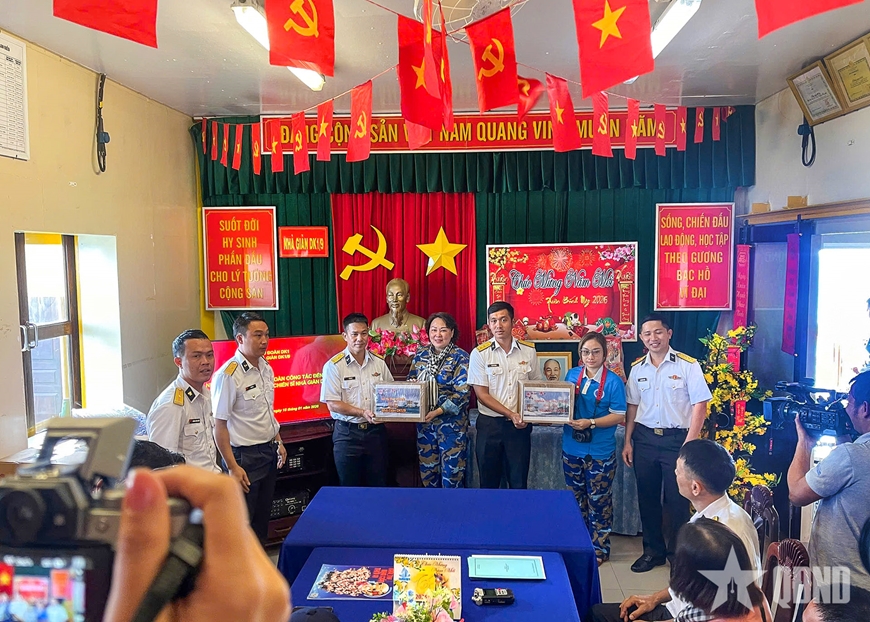Cùng với các phần quà của Bộ Quốc phòng, Quân chủng Hải quân, Vùng 2 Hải quân, các đại biểu đã thay mặt đồng bào trong đất liền thăm hỏi sức khỏe, tình hình thực hiện nhiệm vụ và gửi những lời chúc Tết, tình cảm tốt đẹp đến cán bộ, chiến sĩ, đồng thời tặng đơn vị những phần quà, tuy nhỏ nhưng sâu đậm tình cảm quân dân, góp phần mang hương vị Tết cổ truyền của dân tộc đến với nhà giàn.