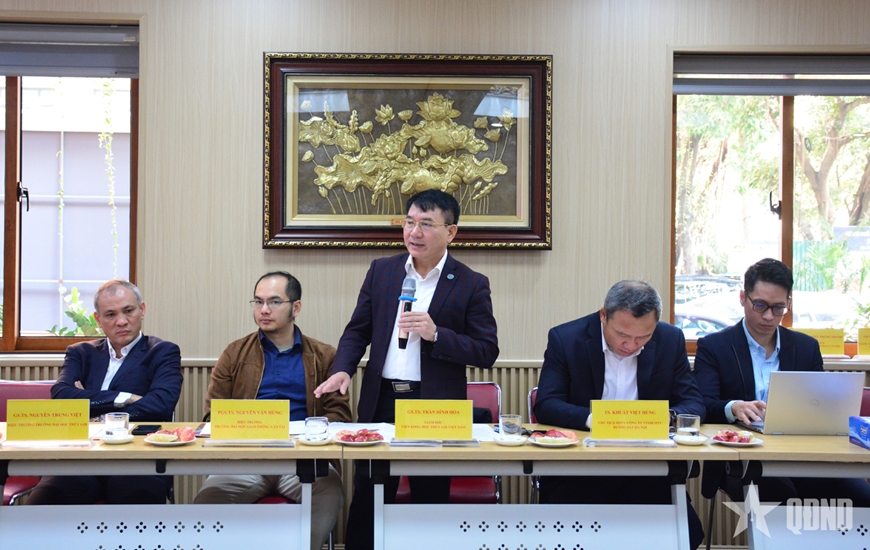 | Trung tướng, GS, TS Nguyễn Xuân Yêm, Viện trưởng Viện An ninh phi truyền thống phát biểu tại tọa đàm. |