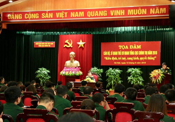 Thiếu tướng Trần Văn Vương, Phó bí thư Đảng ủy Cơ quan TCCT, Cục trưởng Cục Chính trị chủ trì tọa đàm. |