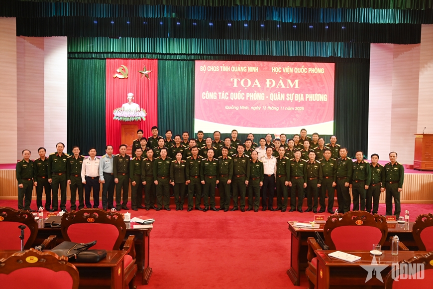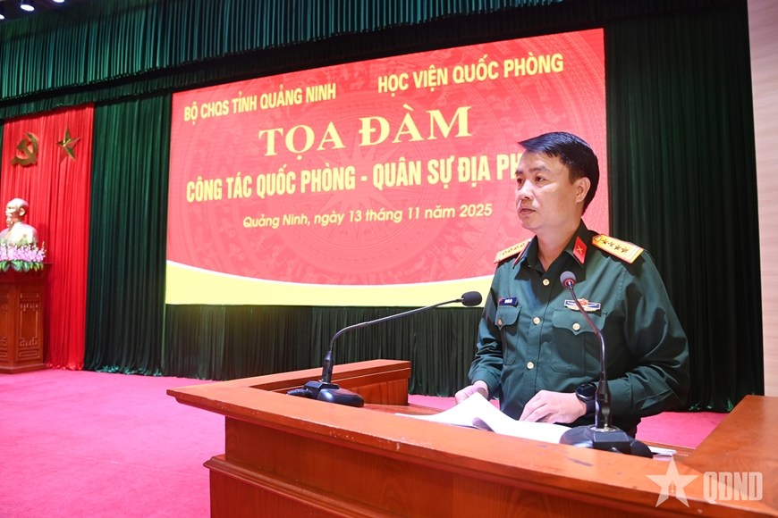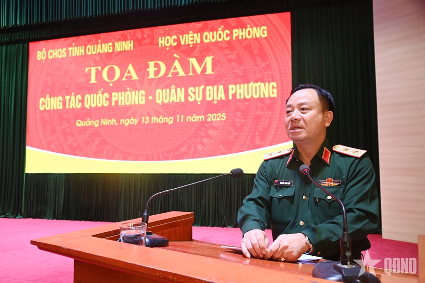 Chiều 13-11, Học viện Quốc phòng phối hợp với Bộ CHQS tỉnh Quảng Ninh tổ chức tọa đàm công tác quốc phòng, quân sự địa phương. Trung tướng, Tiến sĩ Nguyễn Anh Tuấn, Phó giám đốc Học viện Quốc phòng; Đại tá Bùi Đức Lâm, Phó chỉ huy trưởng, Tham mưu trưởng Bộ CHQS tỉnh Quảng Ninh đồng chủ trì tọa đàm.