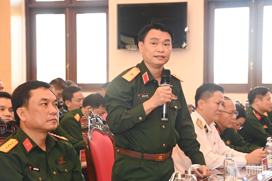 | Trung tướng, Tiến sĩ Nguyễn Anh Tuấn, Phó giám đốc Học viện Quốc phòng, phát biểu tại buổi tọa đàm. |