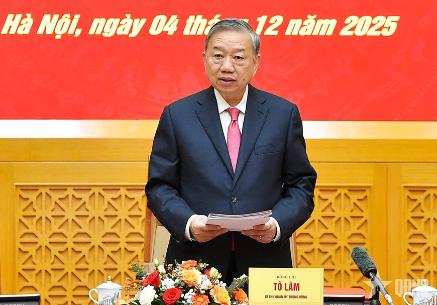 | Tổng Bí thư Tô Lâm, Bí thư Quân ủy Trung ương chủ trì hội nghị. |