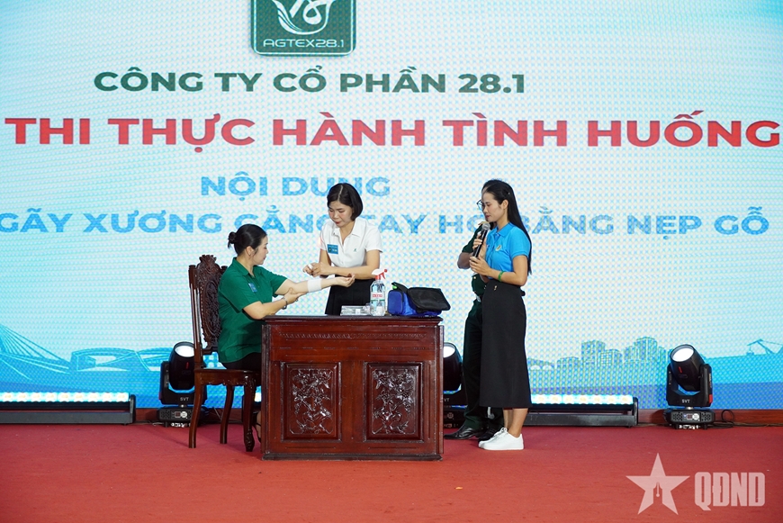 | Phần thi thực hành sơ cấp cứu thể hiện rõ kỹ năng, bản lĩnh của các thí sinh. |