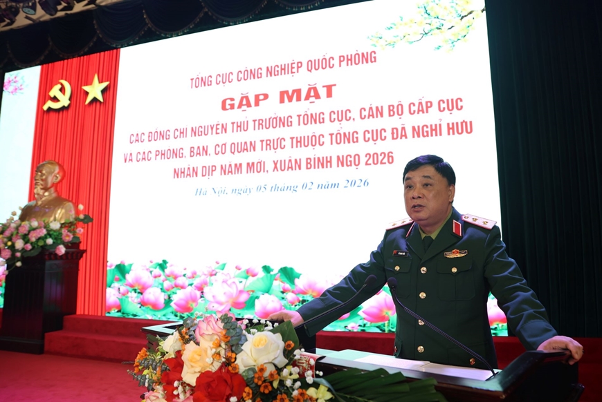 Phát biểu tại buổi gặp mặt, Trung tướng Hồ Quang Tuấn đã thông báo những kết quả nổi bật mà Tổng cục Công nghiệp Quốc phòng đã đạt được trong năm 2025. Theo đó, Tổng cục đã tham mưu có hiệu quả với Quân ủy Trung ương, Bộ Quốc phòng tổ chức thực hiện Chương trình hành động của Chính phủ, Kế hoạch của Bộ Quốc phòng thực hiện Nghị quyết số 08-NQ/TW của Bộ Chính trị về đẩy mạnh phát triển công nghiệp quốc phòng đến năm 2030 và những năm tiếp theo; tham mưu ban hành các nghị định của Chính phủ, quyết định của Thủ tướng Chính phủ và thông tư của Bộ Quốc phòng bảo đảm đồng bộ, chất lượng.