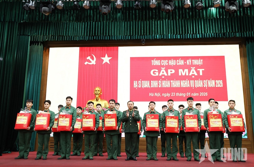 Nhân dịp này, Thiếu tướng Phùng Ngọc Sơn thay mặt Đảng ủy, Chỉ huy Tổng cục Hậu cần - Kỹ thuật trao quà Tết tặng các đồng chí hạ sĩ quan, binh sĩ hoàn thành nghĩa vụ quân sự năm 2026./.