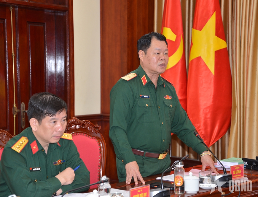 | Thiếu tướng Hà Tất Đạt, Phó tư lệnh Quân khu 3 phát biểu tại buổi kiểm tra. |
