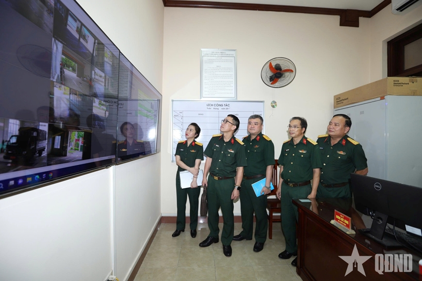 Đoàn công tác kiểm tra phần mềm hệ thống camera giám sát kiểm định xe -máy quân sự của Cục Xe máy-Vận tải. |