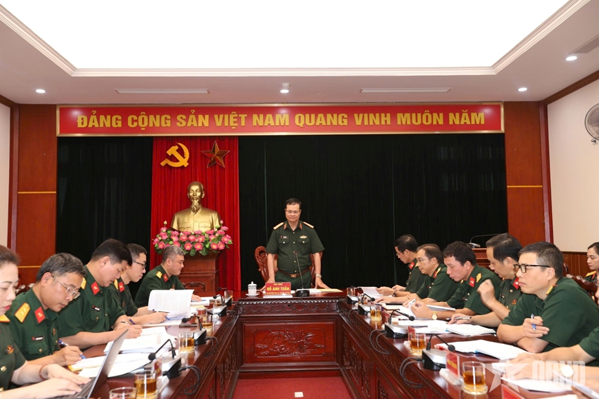 Thiếu tướng Đỗ Anh Tuấn, Phó chủ nhiệm Tổng cục Hậu cần-Kỹ thuật chủ trì buổi làm việc tại Cục Xe máy-Vận tải. |