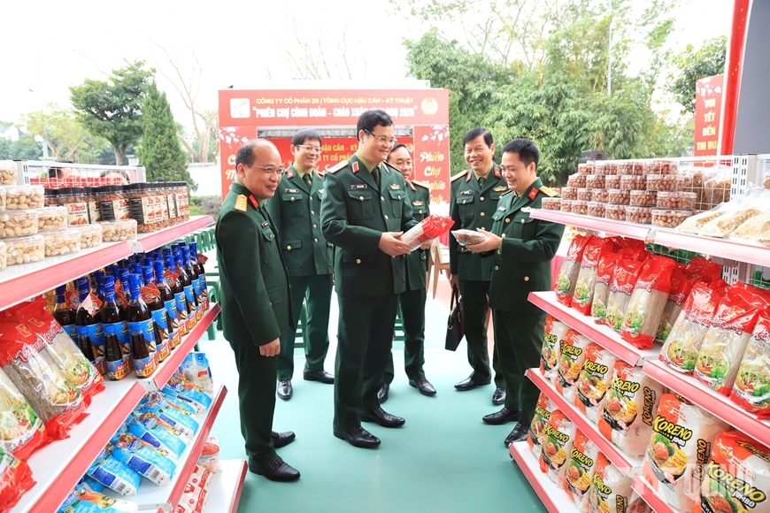 | Đoàn công tác Tổng cục Hậu cần - Kỹ thuật thăm, kiểm tra công tác chuẩn bị "Phiên chợ 0 đồng" dành cho người lao động của Công ty Cổ phần 26 nhân dịp Tết Nguyên đán Bính Ngọ. |