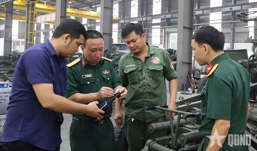 | Cán bộ đoàn công tác kiểm tra vật tư, phụ tùng kỹ thuật của vũ khí. |