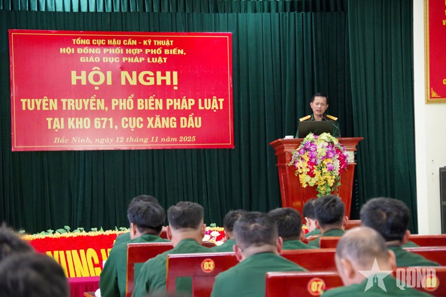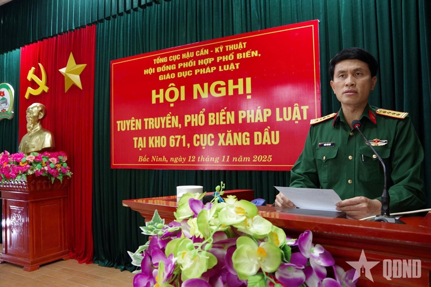 Tham dự Hội nghị có các đồng chí trong Tổ báo cáo viên pháp luật Tổng cục Hậu cần-Kỹ thuật; lãnh đạo, chỉ huy Kho; đại biểu Phòng Chính trị, Cục Xăng dầu cùng cán bộ, nhân viên, chiến sĩ Kho 671.