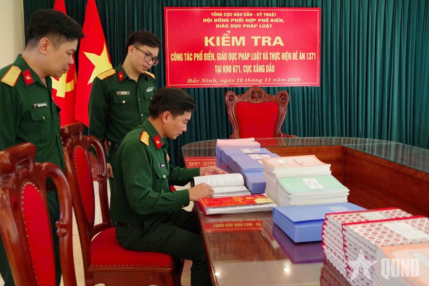 Kiểm tra hệ thống sổ sách tuyên truyền, phổ biến giáo dục pháp luật và thực hiện Đề án 1371 tại Kho 671.