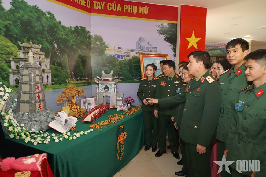 | Trung tướng Đỗ Văn Thiện và các đại biểu tham quan khu trưng bày các sản phẩm chào mừng hội nghị. |