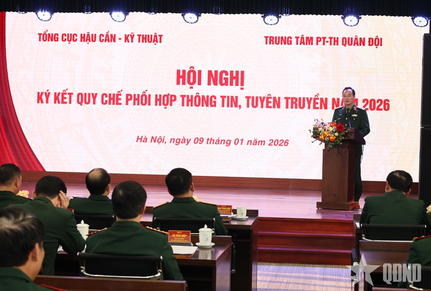 Các đại biểu chứng kiến ký kết quy chế phối hợp thông tin, tuyên truyền năm 2026 giữa Tổng cục Hậu cần - Kỹ thuật và Trung tâm Phát thanh - Truyền hình Quân đội.