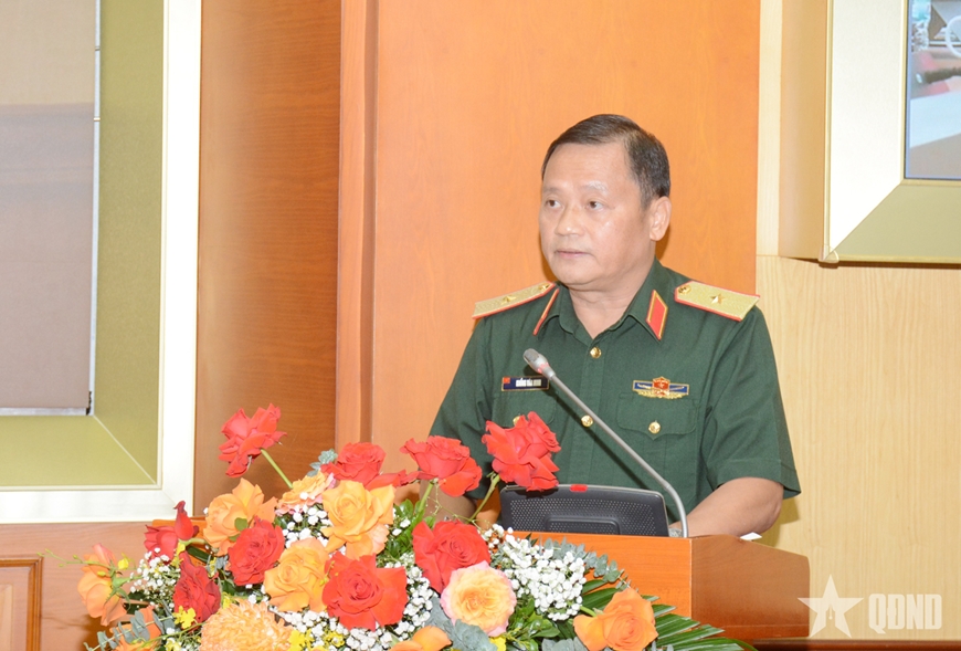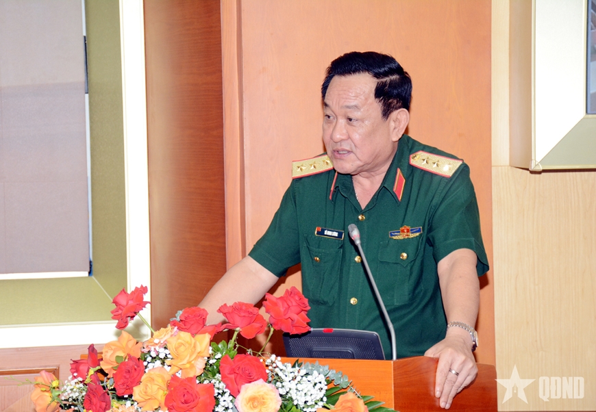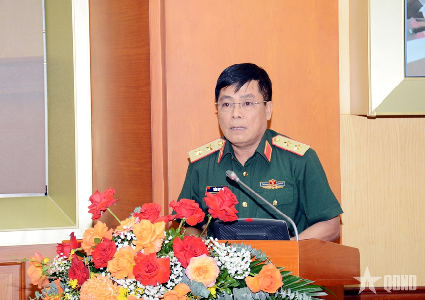 Trung tướng Trần Minh Đức, Chủ nhiệm Tổng cục Hậu cần - Kỹ thuật phát biểu tham luận tại hội nghị. |