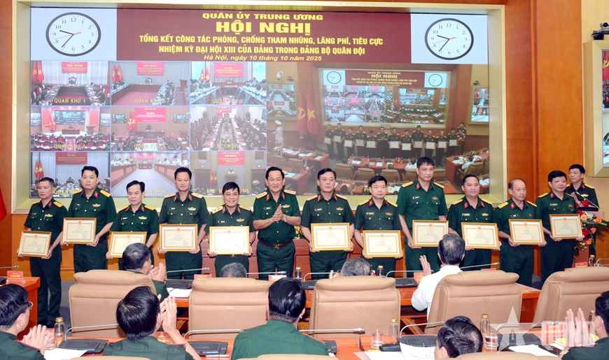 Tại hội nghị, Thượng tướng Võ Minh Lương đã trao Bằng khen của Bộ trưởng Bộ Quốc phòng tặng các tập thể, cá nhân có thành tích xuất sắc trong việc triển khai, tổ chức thực hiện công tác phòng, chống tham nhũng, lãng phí, tiêu cực nhiệm kỳ Đại hội XIII của Đảng trong Đảng bộ Quân đội.