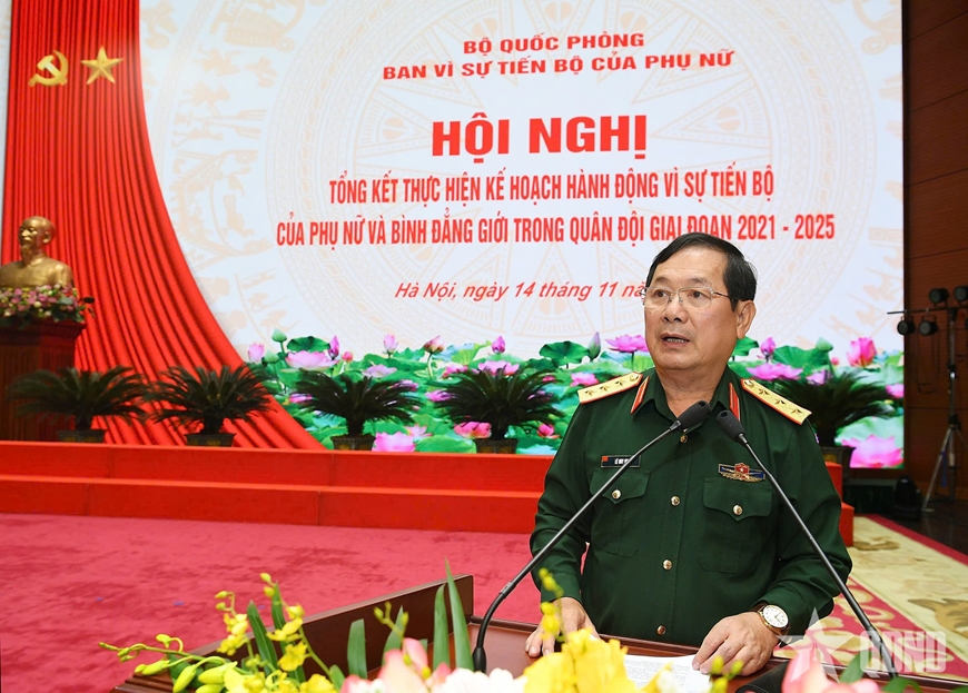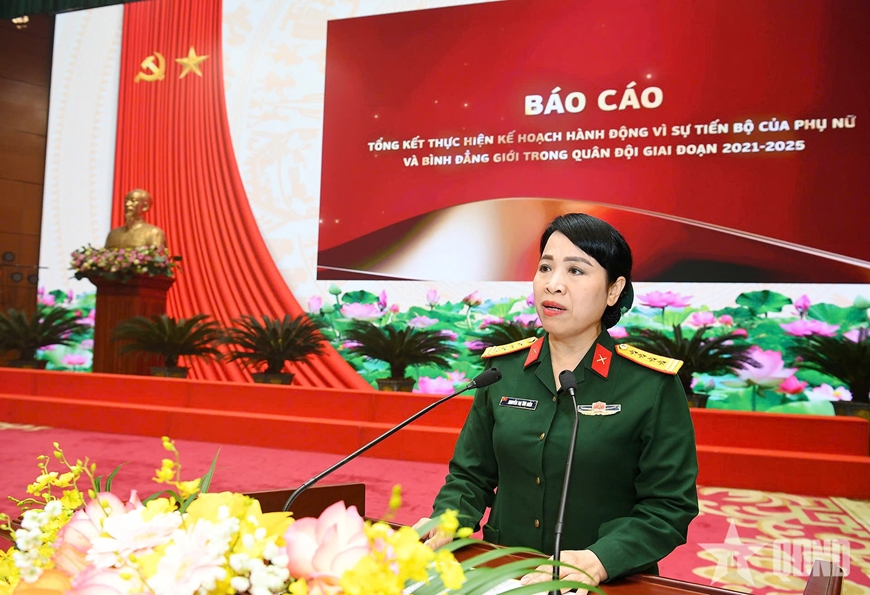 Báo cáo tổng kết công tác VSTBCPN và BĐG giai đoạn 2021-2025 do Đại tá Nguyễn Thị Thu Hiền, Trưởng ban Phụ nữ Quân đội thay mặt Cơ quan Thường trực Ban VSTBCPN Bộ Quốc phòng trình bày tại hội nghị khẳng định: Giai đoạn 2021 - 2025, công tác VSTBCPN và BĐG trong Quân đội đã triển khai thực hiện toàn diện, có trọng tâm, trọng điểm. Công tác tuyên truyền có sự đổi mới, sáng tạo, tạo sự lan tỏa sâu rộng trong và ngoài Quân đội. Thường xuyên quan tâm, chăm lo xây dựng, phát triển đội ngũ cán bộ nữ, chú trọng làm tốt công tác tạo nguồn quy hoạch, bố trí sử dụng, đào tạo, bồi dưỡng, tuyển chọn, tuyển dụng, bổ nhiệm cán bộ nữ vào các vị trí chỉ huy, quản lý phù hợp...