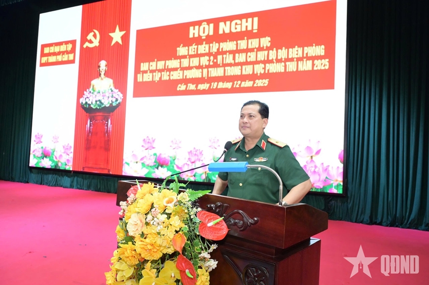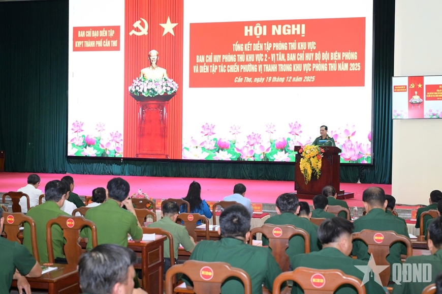 Chiều 19-12, Ban chỉ đạo diễn tập khu vực phòng thủ TP Cần Thơ tổ chức Hội nghị tổng kết diễn tập phòng thủ khu vực (PTKV) cho Ban chỉ huy PTKV 2 - Vị Tân, Ban chỉ huy Bộ đội Biên phòng (BĐBP) và diễn tập tác chiến phường Vị Thanh trong khu vực phòng thủ năm 2025. Cuộc diễn tập để Bộ tư lệnh Quân khu 9 rút kinh nghiệm sau khi thực hiện chính quyền địa phương 2 cấp.