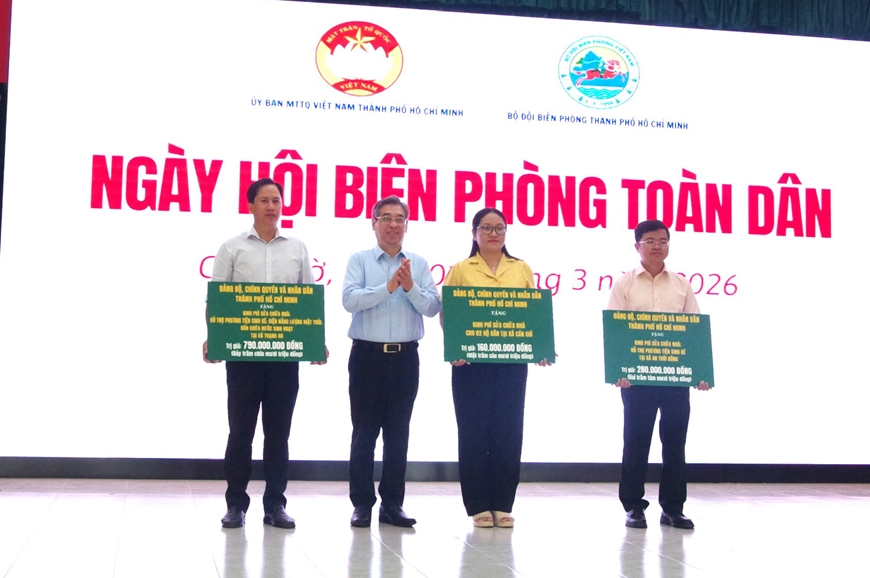 Ngày hội Biên phòng toàn dân tại xã Cần Giờ, TP Hồ Chí Minh đã diễn ra nhiều hoạt động ý nghĩa thắt chặt tình đoàn kết quân dân như: Hỗ trợ kinh phí sửa chữa 6 căn nhà, hỗ trợ 30 phương tiện sinh kế cho các hộ dân có hoàn cảnh khó khăn, thăm và tặng quà 308 thành viên các “Tổ tự quản an ninh trật tự”, “Tổ tự quản tàu, thuyền an toàn”, “Bến đò tự quản an toàn”, trao 95 suất học bổng tặng học sinh trong Chương trình “Nâng bước em tới trường - Con nuôi đồn Biên phòng”…