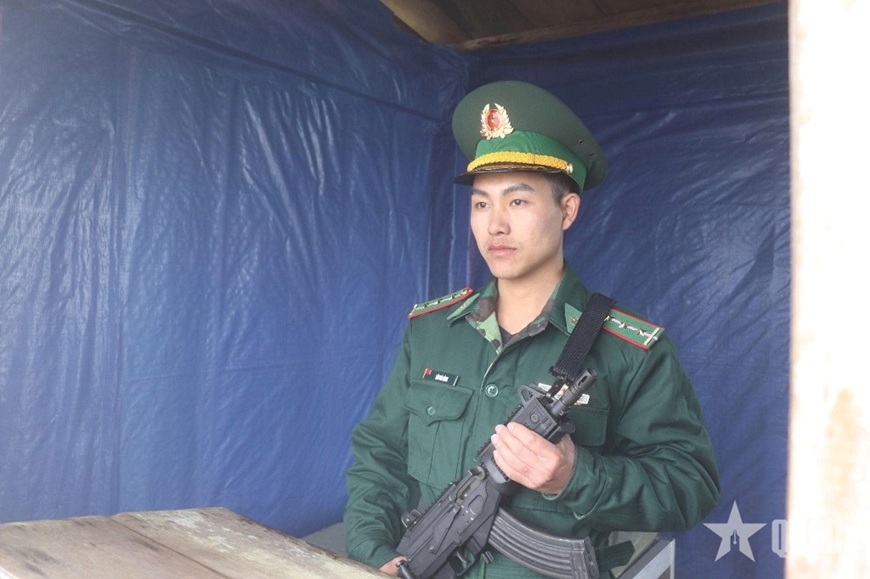 | Cán bộ Trạm Kiểm soát Biên phòng Buộc Mú canh gác tại chốt. |