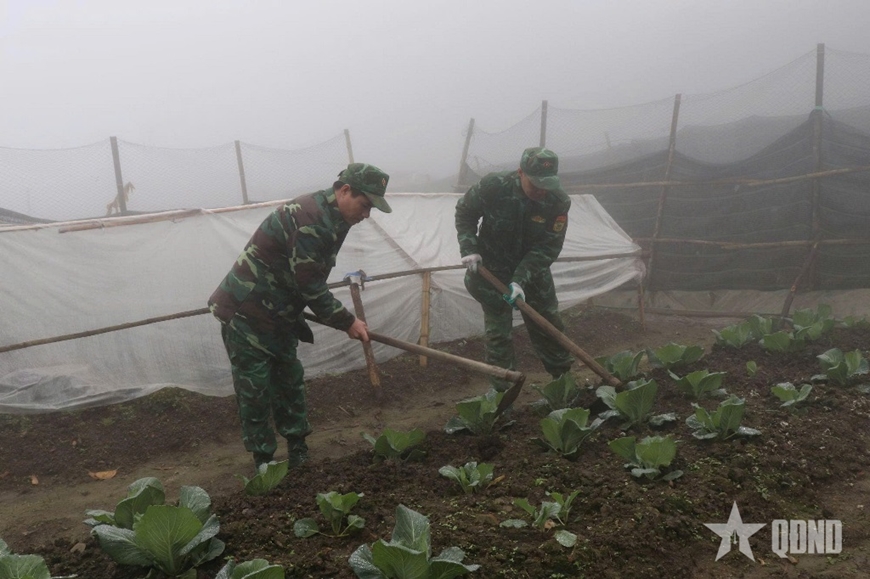 Cùng với nhiệm vụ chuyên môn, cán bộ, chiến sĩ đơn vị còn chú trọng đẩy mạnh tăng gia sản xuất để cải thiện đời sống. Trên những khoảnh đất ít ỏi giữa núi cao, bộ đội tận dụng từng khoảng trống để trồng rau xanh, chăn nuôi gia cầm. Những luống rau vươn mình trong giá lạnh không chỉ mang lại nguồn thực phẩm tại chỗ mà còn là minh chứng cho tinh thần chủ động, sáng tạo của người lính Biên phòng trước khó khăn. Ở nơi quanh năm mây phủ, cán bộ, chiến sĩ Trạm Kiểm soát Biên phòng Buộc Mú luôn vững vàng trong quản lý, bảo vệ biên giới.