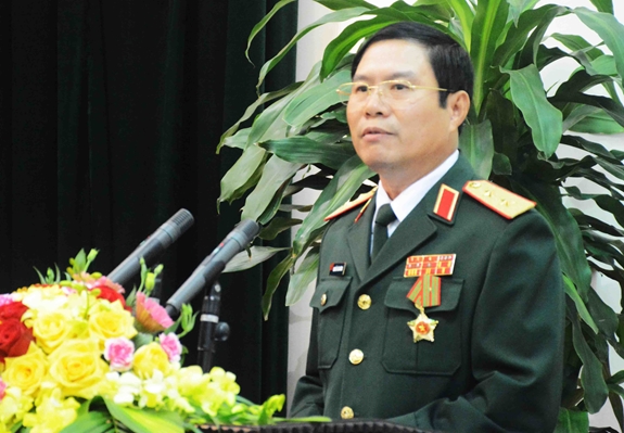 Trung tướng Nguyễn Tân Cương, Ủy viên Trung ương Đảng, Thứ trưởng BQP phát biểu tại buổi lễ.