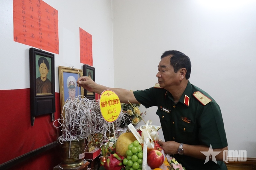 Thiếu tướng Trương Mạnh Dũng, Tư lệnh Quân khu 1 thắp hương tri ân Trung tướng Đàm Văn Ngụy. |