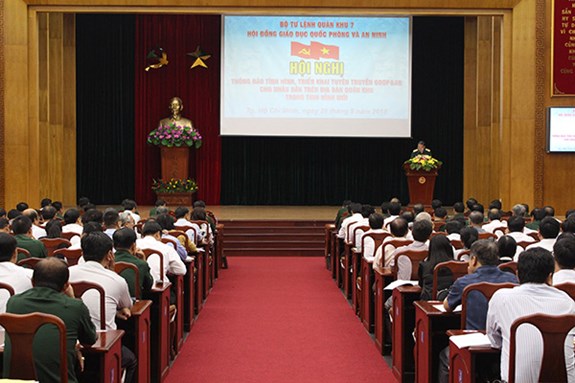 Phát biểu khai mạc tại hội nghị, Trung tướng Võ Minh Lương nhấn mạnh, các chuyên đề do Hội đồng giáo dục QPAN Quân khu 7 biên soạn là những nội dung chắt lọc sát địa bàn quân khu, có ý nghĩa quan trọng trong xây dựng thế trận lòng dân, xây dựng nền quốc phòng toàn dân, xây dựng, bảo vệ Tổ quốc thời kỳ mới. Do vậy, Hội đồng giáo dục QPAN các cấp cần phối hợp huy động nhiều lực lượng, phương tiện, đa dạng hình thức tuyên truyền. Qua đó tạo thống nhất cao trong nhân dân về đường lối, quan điểm, chủ trương của Đảng, pháp luật Nhà nước, nhất là những vấn đề mới, vạch rõ bản chất, âm mưu, thủ đoạn của các thế lực thù địch, giữ vững an ninh chính trị, trật tự an toàn xã hội.