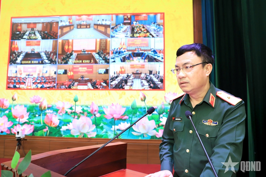 Đại tá Đinh Huy Chung, Phó tham mưu trưởng Tổng cục Hậu cần - Kỹ thuật báo cáo công tác Hậu cần, Kỹ thuật toàn quân quý I năm 2025.