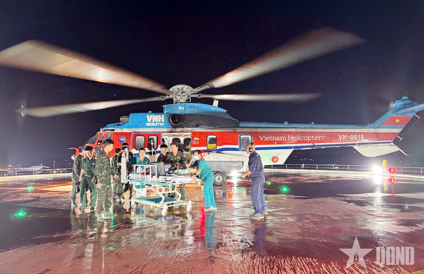 Chấp hành mệnh lệnh của Bộ Quốc phòng, Binh đoàn 18 đã điều động tổ bay trực thăng EC-225 mang số hiệu VN-8618 do Thượng tá Đỗ Hoàng Hải làm cơ trưởng, cùng tổ cấp cứu đường không của Bệnh viện Quân y 175 do Thiếu tá, ThS, BSCKI Đinh Văn Hồng phụ trách, xuất phát từ sân bay Tân Sơn Nhất lúc 16 giờ 30 phút ngày 14-10. Tổ cấp cứu mang theo đầy đủ trang thiết bị hồi sức tim mạch chuyên sâu và đội ngũ bác sĩ có kinh nghiệm cấp cứu bệnh nhân nguy kịch, đặc biệt có sự tham gia của bác sĩ can thiệp tim mạch.