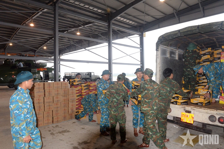 Sau khi nhận nhiệm vụ, các tổ bay đã làm tốt công tác chuẩn bị; vận chuyển hàng hóa, lương thực, thực phẩm, nhu yếu phẩm lên máy bay.