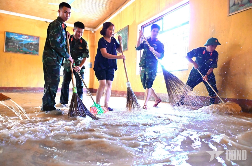 Sáng 10-10, Trung đoàn 12, Sư đoàn 3, Quân khu 1 đã điều động lực lượng, phương tiện đến điểm ngập lụt tại Trường Phổ thông dân tộc nội trú, THCS và THPT Hữu Lũng trên địa bàn xã Hữu Lũng (tỉnh Lạng Sơn) để tổng dọn vệ sinh môi trường, tu sửa đồ dùng học tập để sớm ổn định công tác dạy và học.