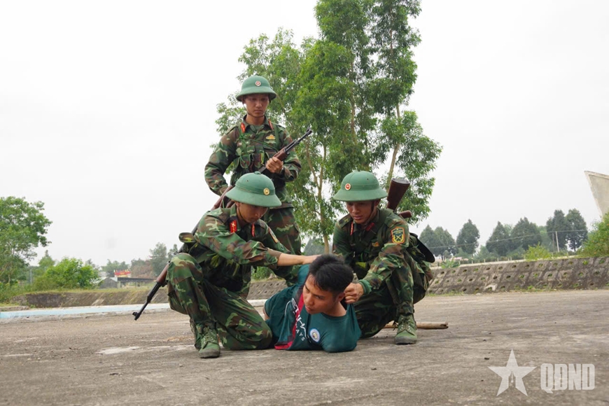 | Trên hướng phòng ngự chủ yếu, các chiến sĩ của Tiểu đoàn 1 đã kịp thời ngăn chặn, bắt giữ những tên địch đột nhập, bảo vệ an toàn đơn vị (tình huống giả định). |