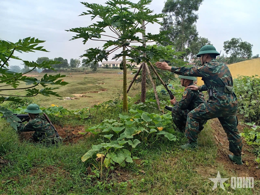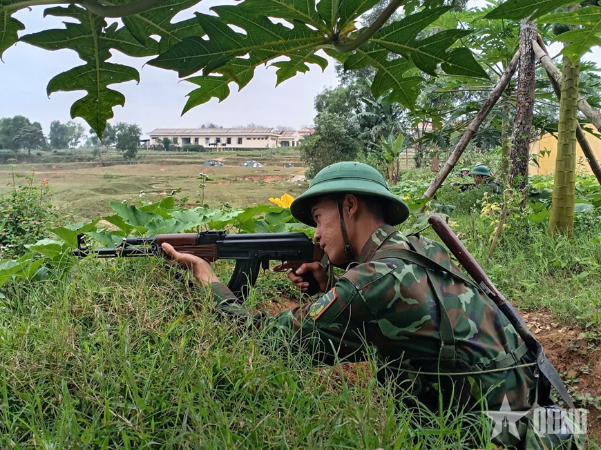 | Các chiến sĩ lợi dụng địa hình địa vật kiên quyết nổ súng tiêu diệt, ngăn chặn địch. |
