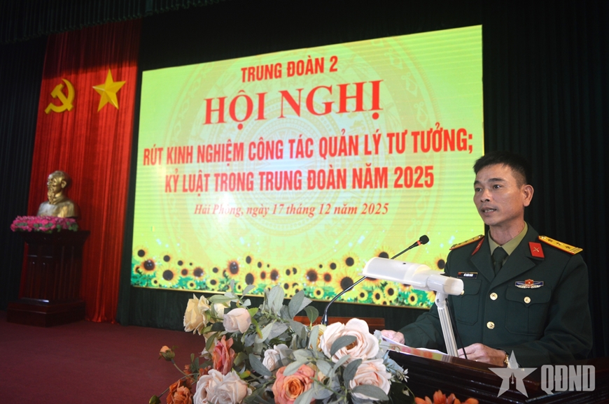 Kết luận hội nghị, Thượng tá Vũ Xuân Đoán, Bí thư Đảng ủy, Chính ủy Trung đoàn 2 yêu cầu cấp ủy, chỉ huy cơ quan, đơn vị trong Trung đoàn thường xuyên theo dõi, nắm chắc tình hình, có chủ trương, biện pháp dự báo, nắm, quản lý chặt chẽ tình hình tư tưởng bộ đội; tăng cường lãnh đạo, chỉ đạo, chấp hành nghiêm pháp luật Nhà nước, kỷ luật Quân đội, bảo đảm an toàn tuyệt đối về mọi mặt.