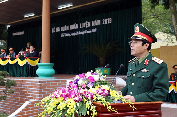 Trung tướng Nguyễn Tân Cương phát biểu tại Lễ ra quân huấn luyện của Trung đoàn 2. |