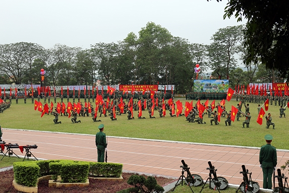 Tiết mục múa cờ của cán bộ, chiến sĩ Trung đoàn 2 tại Lễ ra quân huấn luyện. |