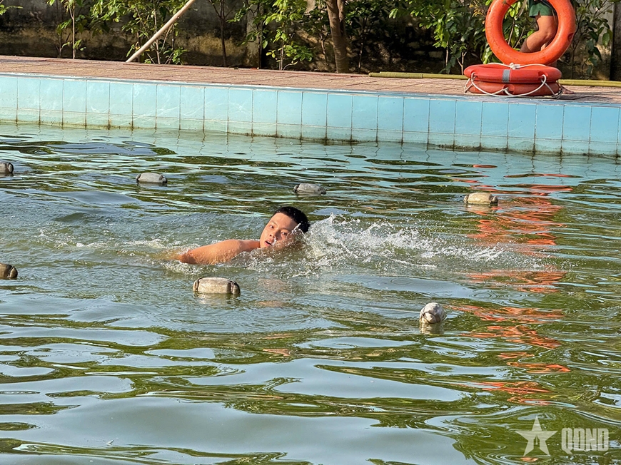 | Chiến sĩ mới tham gia kiểm tra bơi. |